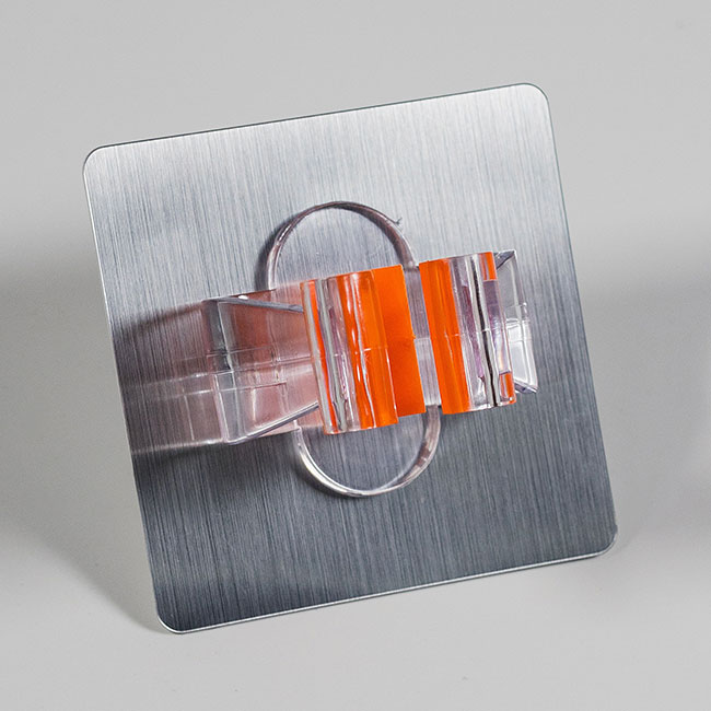 2. Retirar la protección de la parte posterior del colgador, con cuidado de no tocar la parte adhesiva con los dedos.